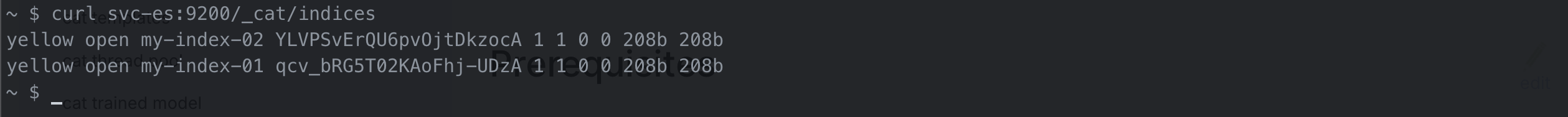 별도의 파드를 띄워서 조금 전에 띄운 ElasticSearch 파드가 정상적으로 운영되는지, 접근이 되는지 확인해보겠습니다.