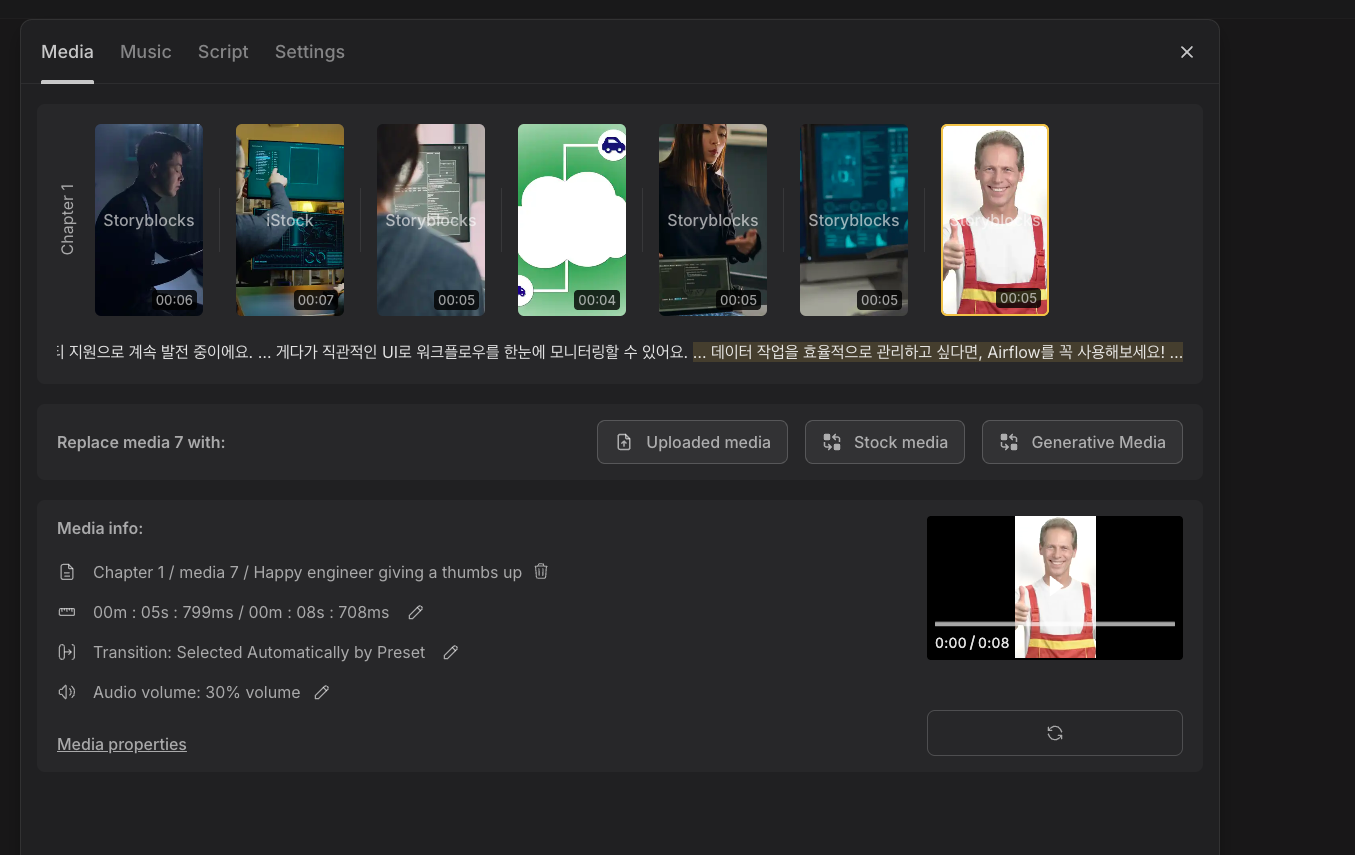 물론 !!! 자동으로 생성된 영상은 한 20% 정도 부족해보인다.