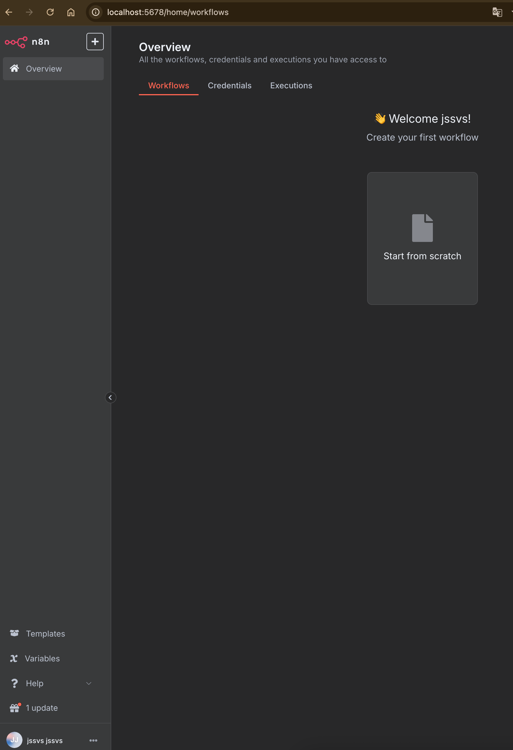 이제 브라우저에서 http://localhost:5678로 접속하면 로그인 후 N8N 대시보드에 들어갈 수 있다.