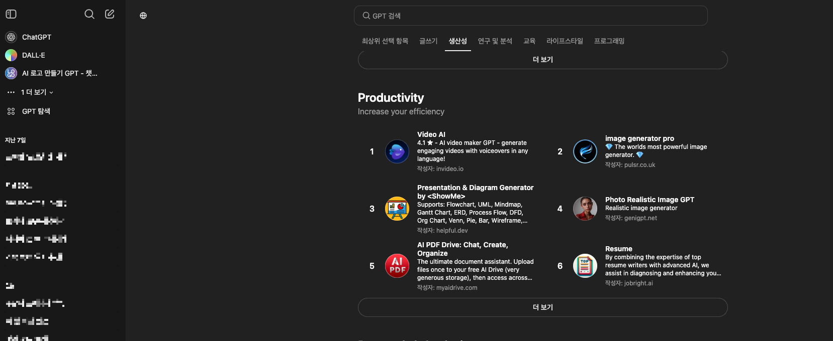 GPT 탐색 을 눌러보면 video maker 와 관련된 여러 모델들을 검색할 수 있는데, 나는 1위에 랭크되있는 모델을 택했다.